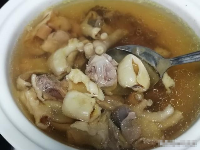 2、雞要焯水洗干凈,加入魚膠一起煲,1小時左右加入鹽碼味,即可開吃。