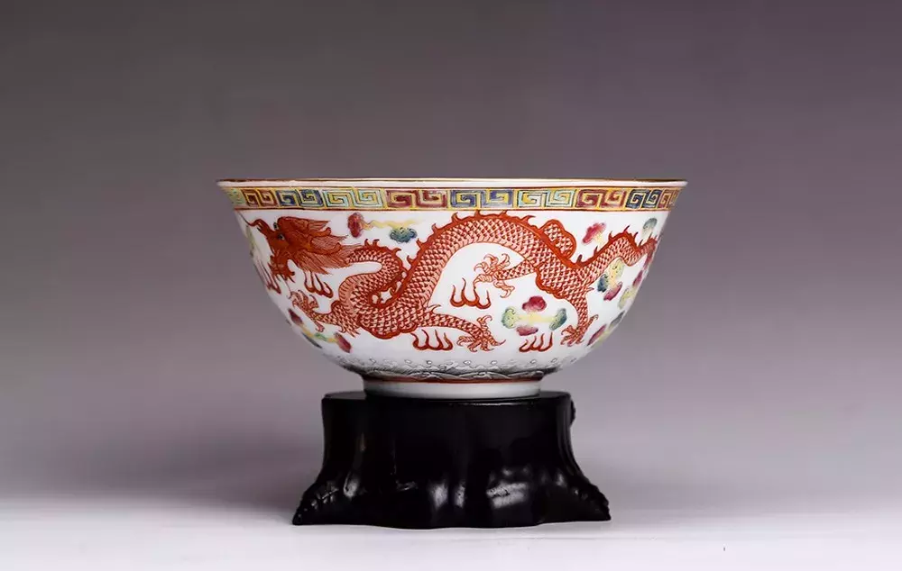 【002拍品】:民國·龍鳳火焰祥雲描金杯碗