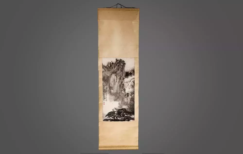 【拍品描述】:此件民國·名家程亞君山水畫一幅,繪畫鼠跳天都峰的景色,在玉屏樓前向東眺望,可見耕雲峰上一巧石,酷似活潑逗人的小松鼠,拖著尾巴,想越過萬丈巨壑,躍上高聳雲霄的天都峰,故名“松鼠跳天都”。奇山峰巒似在雲海中穿插,探頭昂首,若隱若現,或半露面容,盡顯一派變幻莫測之仙境。