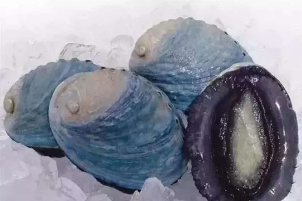 外殼呈藍色,乾淨漂亮,表面沒有雜質和其它貝殼吸附,並且藍殼鮑魚產量很少極其稀有,特顯珍貴,餐飲高檔食材。新西蘭藍鮑魚殼薄肉多、內臟少,非常適合做刺身。